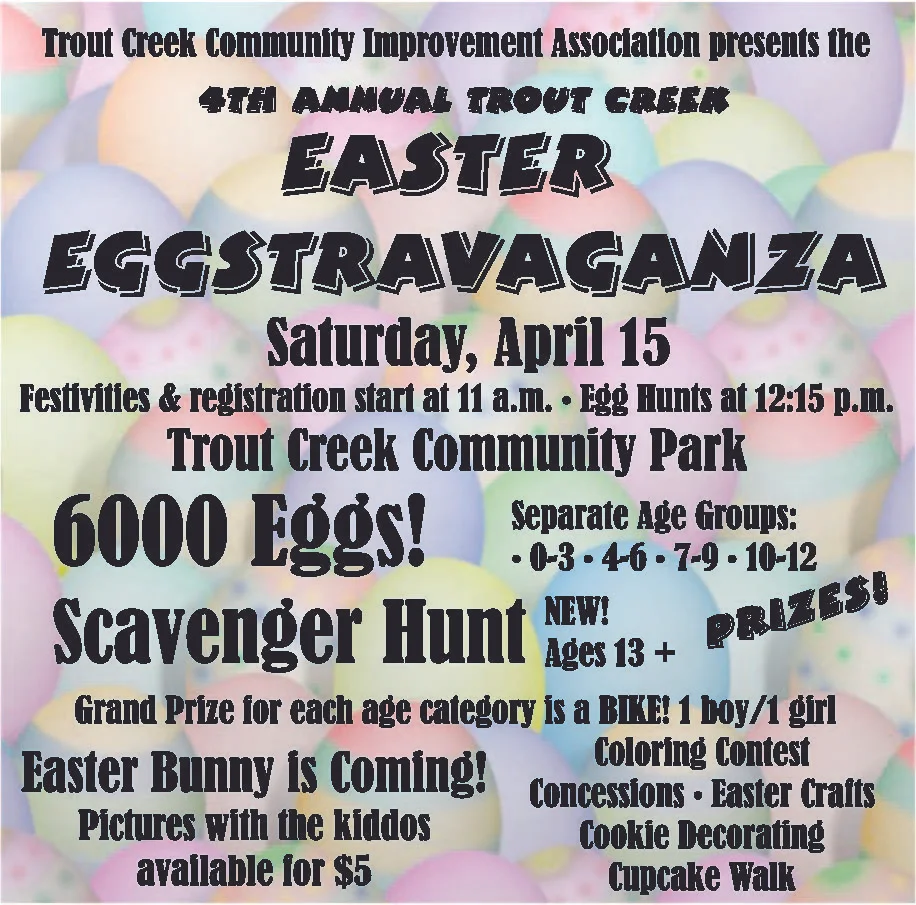 Registration begins at 11:00 for Easter Egg/Scavenger Hunts, which begin at 12:30